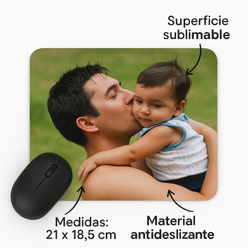 ¡Transforma tu espacio de trabajo en un rincón lleno de amor! La superficie sublimable permite plasmar tu diseño, foto o mensaje favorito con una calidad vibrante, mientras que su base antideslizante asegura estabilidad incluso en los días más ajetreados.