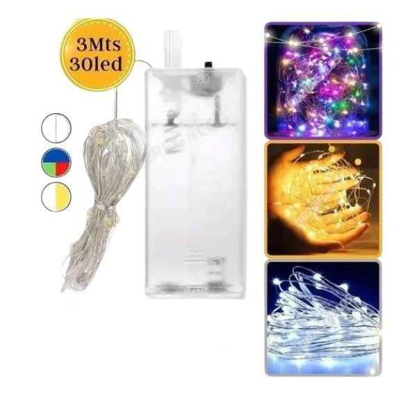 Dale vida a cualquier rincón en segundos. Esta tira de alambre plateado con 30 LED crea un ambiente mágico en cabeceras, repisas, escritorios y fiestas. El cable es discreto y las lucecitas destacan el espacio sin ocupar lugar.