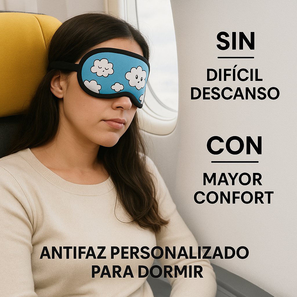 La solución es nuestro Antifaz Personalizado para Dormir. No solo te asegura bloquear esa luz molesta para lograr un descanso súper profundo, sino que además le ponés toda tu onda. Al ser totalmente personalizable, podés salir de lo aburrido y llevar en tu antifaz tu diseño favorito, una foto especial o el logo de tu empresa. Dormir bien nunca tuvo tanto estilo.
