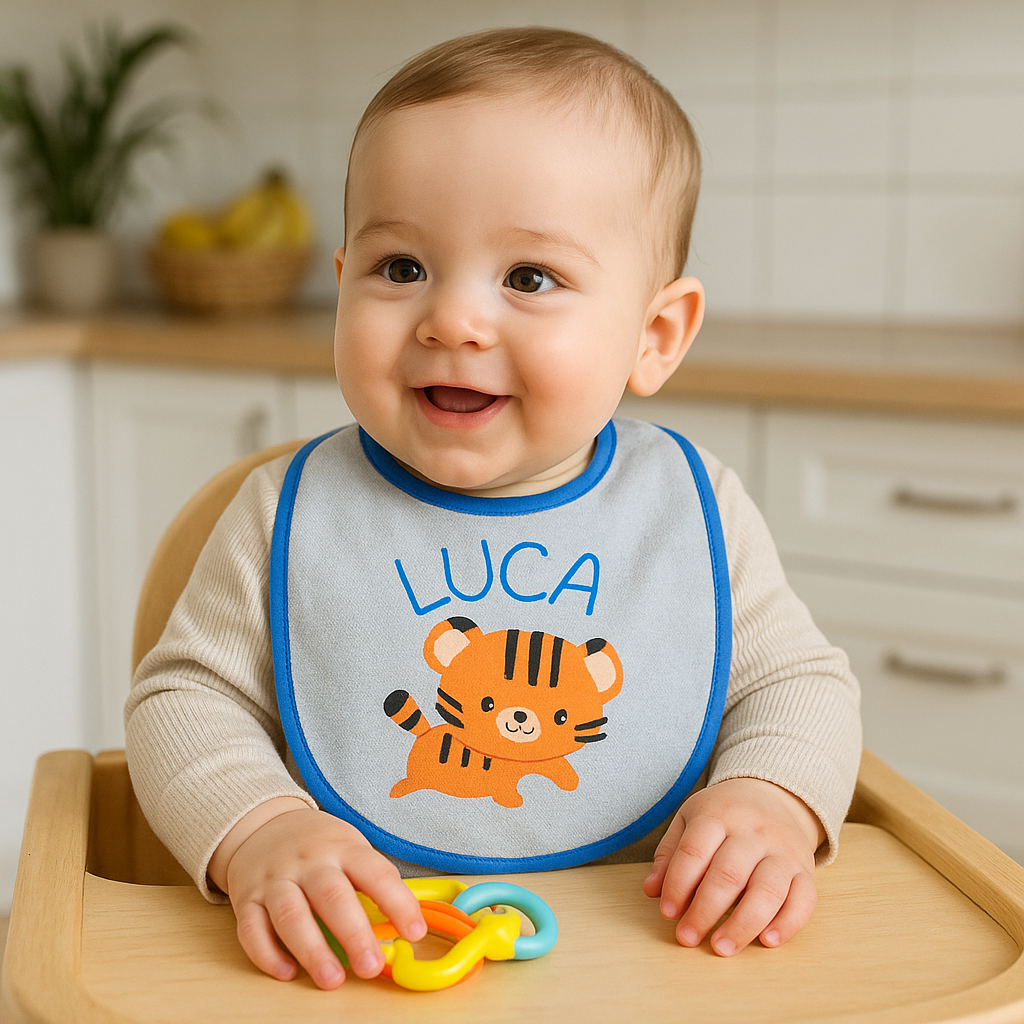 ¿Cansado de que las papillas y las babitas arruinen la ropa de tu peque a cada rato? Sabemos que la hora de comer puede ser un verdadero campo de batalla. Con nuestro babero con toalla y tiras personalizado, le decís chau a las manchas difíciles y al estrés de lavar mil veces por día.