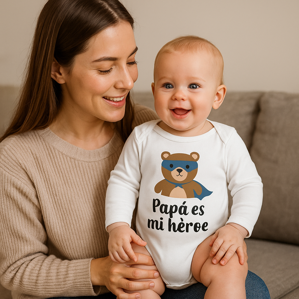 Imaginate la cara de los tíos al leer una frase divertida o la emoción de mamá y papá al ver al bebé con un diseño pensado especialmente para ellos. Es el regalo infalible para Baby Showers, cumpleaños o simplemente para tener fotos increíbles en familia.