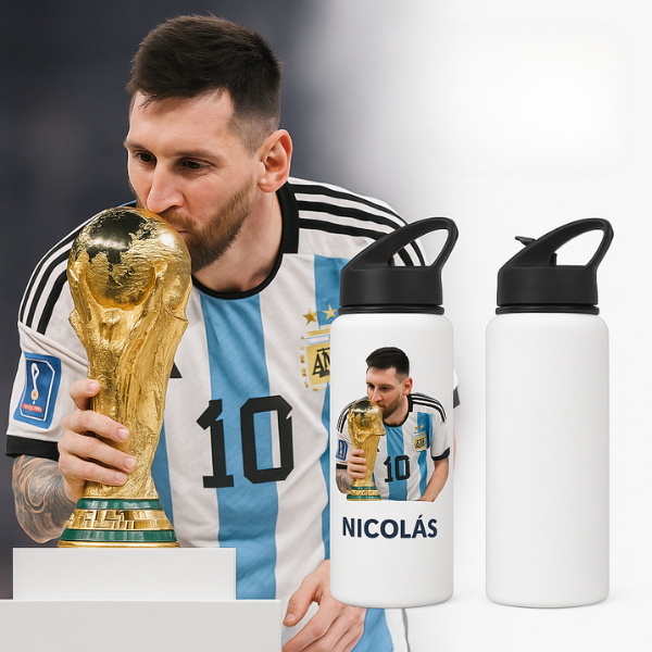 Es una botella térmica deportiva de 550 ml fabricada en polímero de alta resistencia, ideal para estampar con tus fotos, frases o diseños favoritos. Cuenta con pico deportivo, tapa a rosca y un estampado permanente de alta calidad que no se borra con el uso.