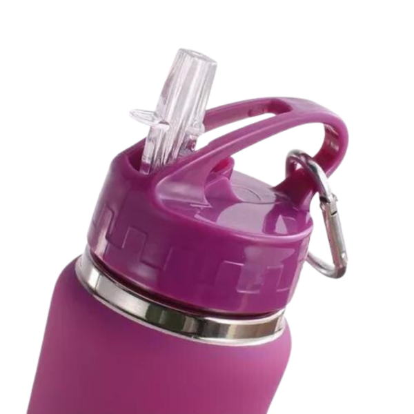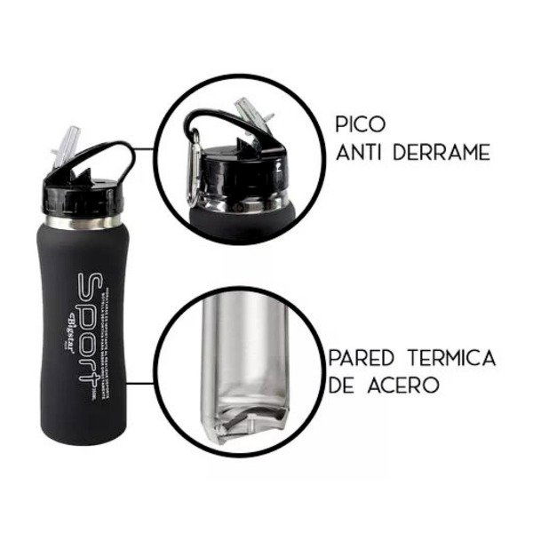 La Botella Térmica 350ml de acero inoxidable es el accesorio definitivo para mantener tus bebidas frías o calientes por hasta 6 horas. Su diseño libre de BPA cuenta con tecnología de doble capa térmica, exterior de pintura siliconada antideslizante, tapa a rosca segura y un práctico gancho para transportarla fácilmente.