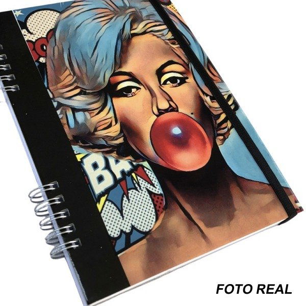Es un cuaderno personalizable de 60 hojas rayadas con espiral metálico, elástico sujetador y tapas de cartón rígido de 2mm. Diseñado para ser estampado mediante sublimación de alta calidad, es el producto ideal para regalar, estudiar o trabajar llevando tus fotos, frases o diseños favoritos a todas partes.