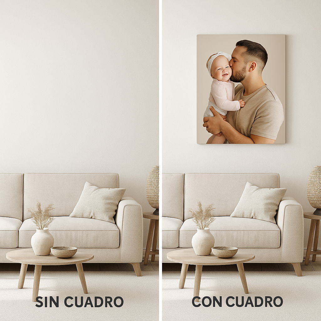 Seguro tenés cientos de fotos espectaculares de tus viajes, de tu familia o de momentos inolvidables guardadas en el celular, acumulando "polvo digital". Es frustrante querer decorar un ambiente importante y no encontrar nada que realmente te identifique o que tenga el tamaño suficiente para llenar ese espacio vacío en el living.