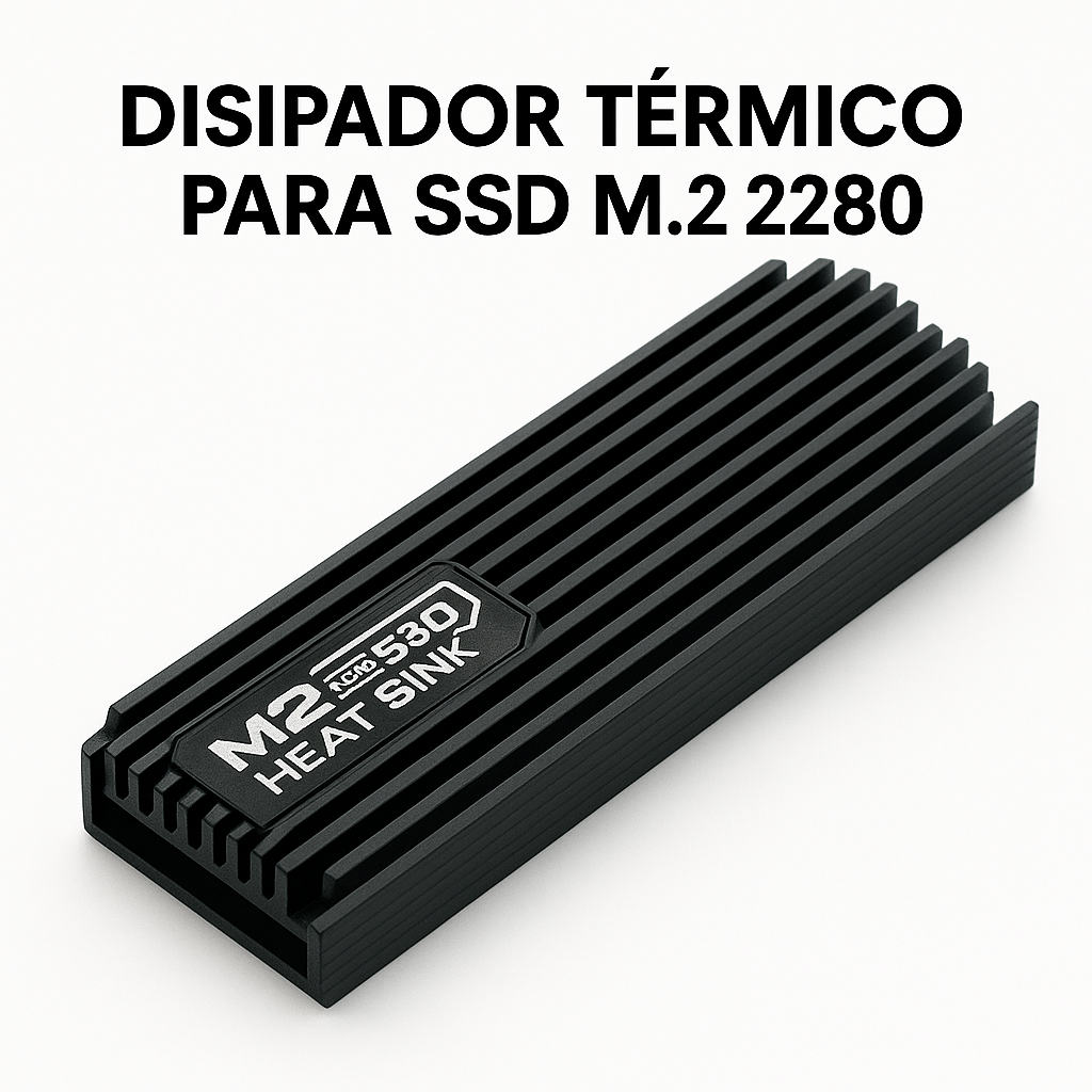 Es un sistema de enfriamiento pasivo fabricado en aluminio anodizado, diseñado específicamente para discos SSD M.2 2280. Incluye almohadillas térmicas que disipan el calor, previniendo el sobrecalentamiento y asegurando el máximo rendimiento en tu PC gamer, de trabajo o PlayStation 5.