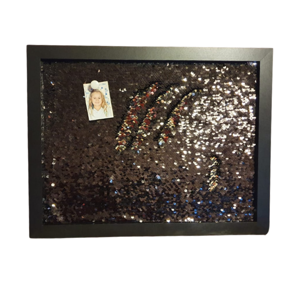 La Pizarra con Brillo TecPic es la solución definitiva para quienes buscan funcionalidad sin sacrificar el diseño. Este no es un simple tablero; es un objeto de deseo que ilumina tu entorno. Fabricada en madera con un recubrimiento especial de glitter que no se desprende, transforma tus recuerdos y pendientes en una galería de arte personal.
