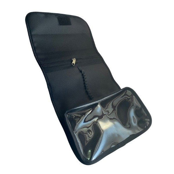 | Material Interior | Tela reforzada con bolsillo de cristal soldado y cierre |