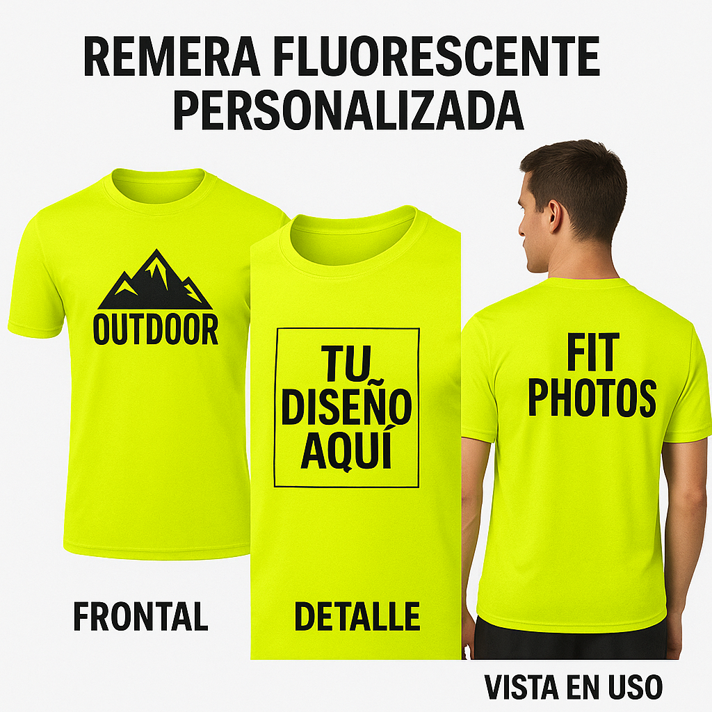 Son remeras técnicas de poliéster premium en colores neón vibrantes (amarillo, verde y rosa), diseñadas para running, eventos nocturnos y equipos deportivos. A diferencia de los estampados tradicionales, utilizamos sublimación digital, lo que garantiza que tu logo, foto o frase se integre a la tela sin relieve, permitiendo que la piel respire y asegurando que el diseño nunca se cuartee ni pierda color.