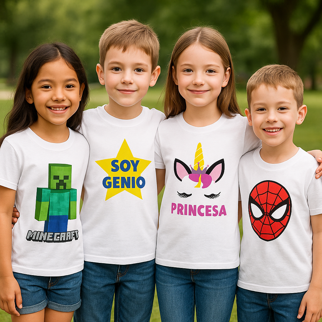 Sabemos lo frustrante que es regalar una remera con la foto o el personaje favorito de tu hijo y ver cómo el estampado se agrieta o se borra a las pocas semanas. Las remeras de algodón comunes con estampados superficiales (transfer o vinilo) tienen una vida útil corta y un tacto "plástico" que a los chicos les molesta, especialmente en días de calor.