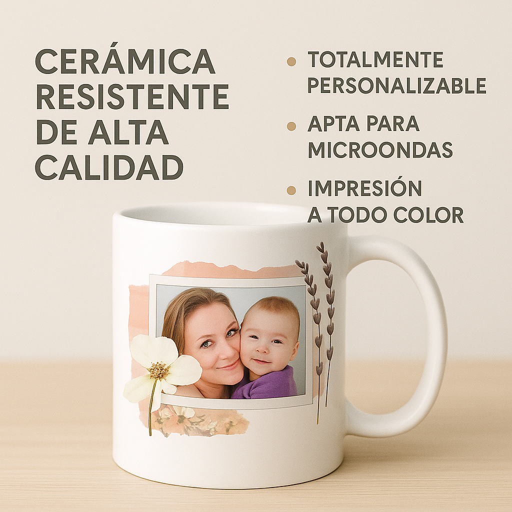 Es una taza de cerámica importada de alta resistencia y acabado brillante, diseñada para durar. A diferencia de las tazas comunes, nuestra técnica de sublimación premium garantiza que tus fotos, frases o logotipos se mantengan vibrantes sin desgastarse con los lavados ni el uso diario en microondas.