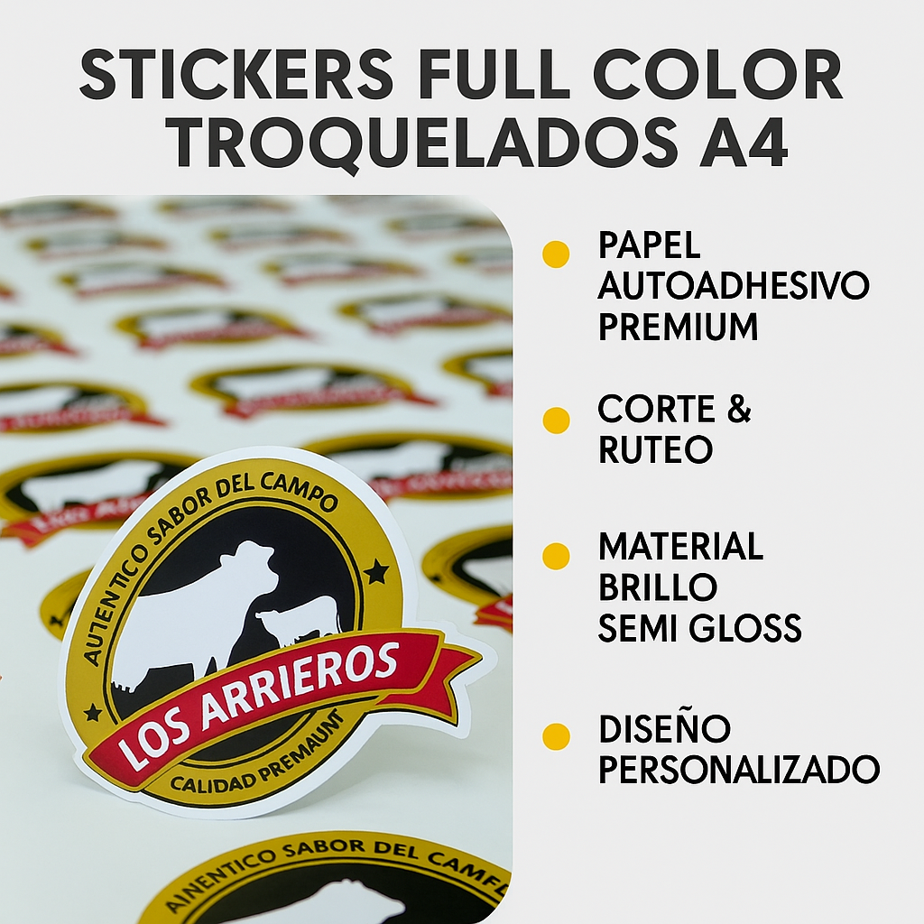 Son calcomanías troqueladas a medida impresas a todo color en planchas tamaño A4. Fabricados con papel autoadhesivo premium de acabado semi-brillante, estos stickers son ideales para potenciar tu marca, decorar objetos o regalar. Ofrecen máxima adherencia y durabilidad en múltiples superficies.