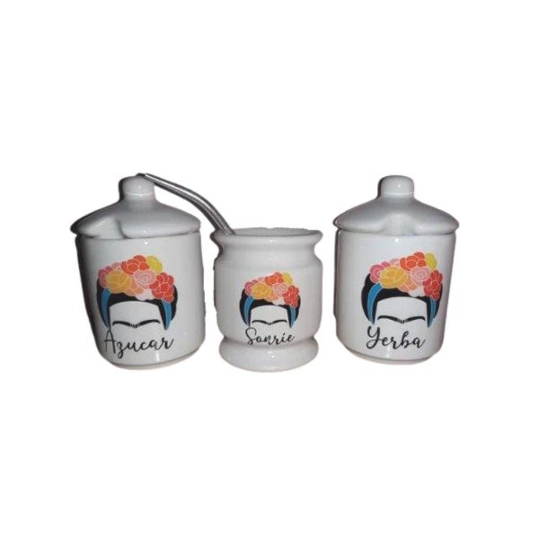 | Componentes | Mate, yerbera y azucarera (ambas con tapas) + Bombilla de acero inoxidable |